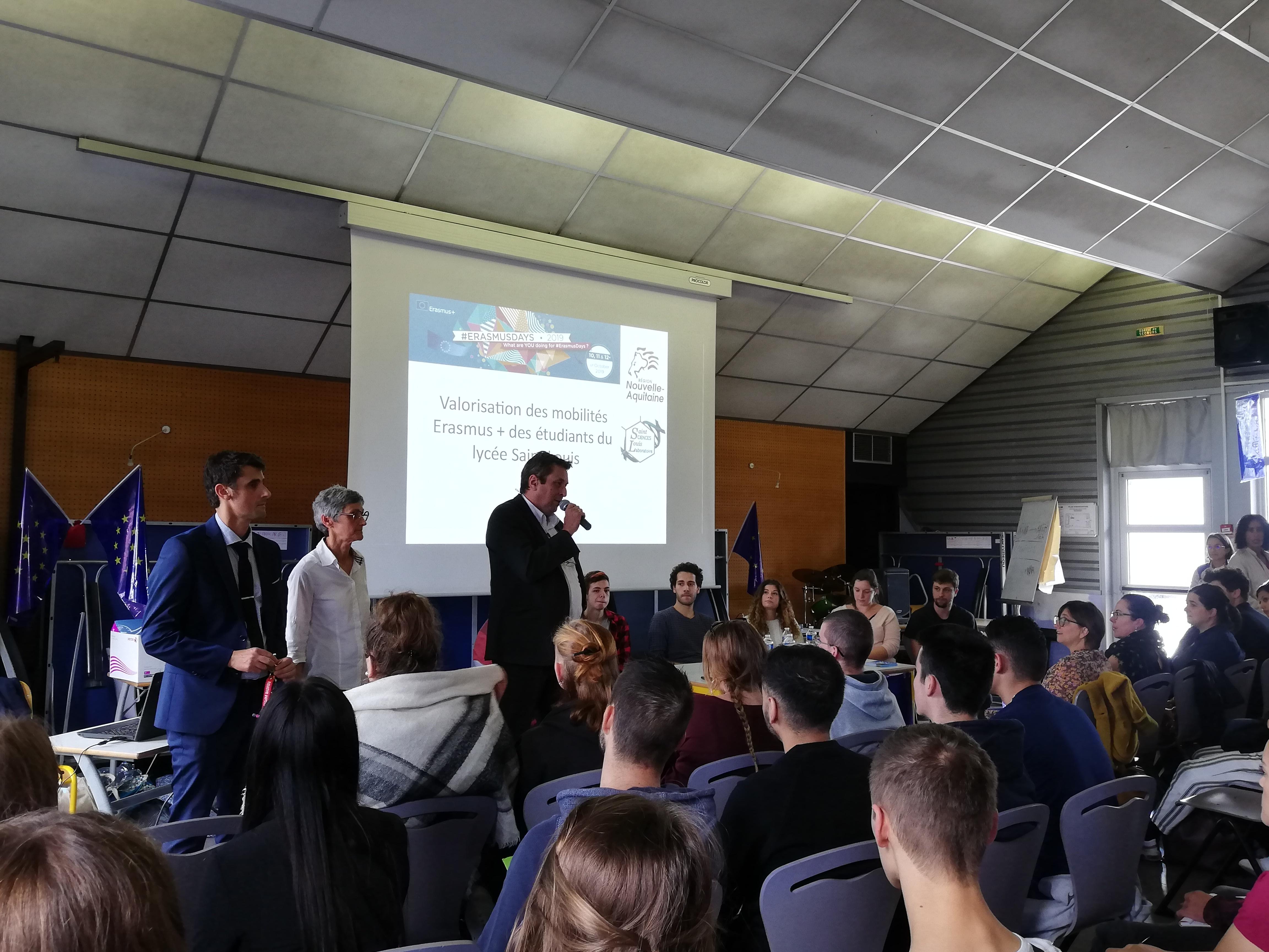 Jeudi 10 Octobre 2019, nous avons célébré les Erasmus Days, par un échange en salle polyvalente, décorée sur le thème européen pour l’occasion avec 120 étudiants de 1ère et 2ème année des 5 formations de STS proposées au lycée Saint-Louis (STS Analyses de Biologie Médicale, BioAnalyses et Contrôles, Biotechnologies, Diététique et Métiers de la Chimie).